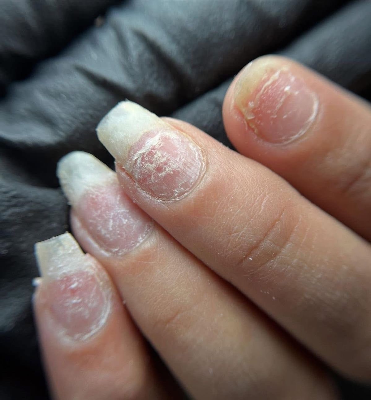 • Móng bị tổn thương do tẩy sơn hoặc phá gel không đúng cách.